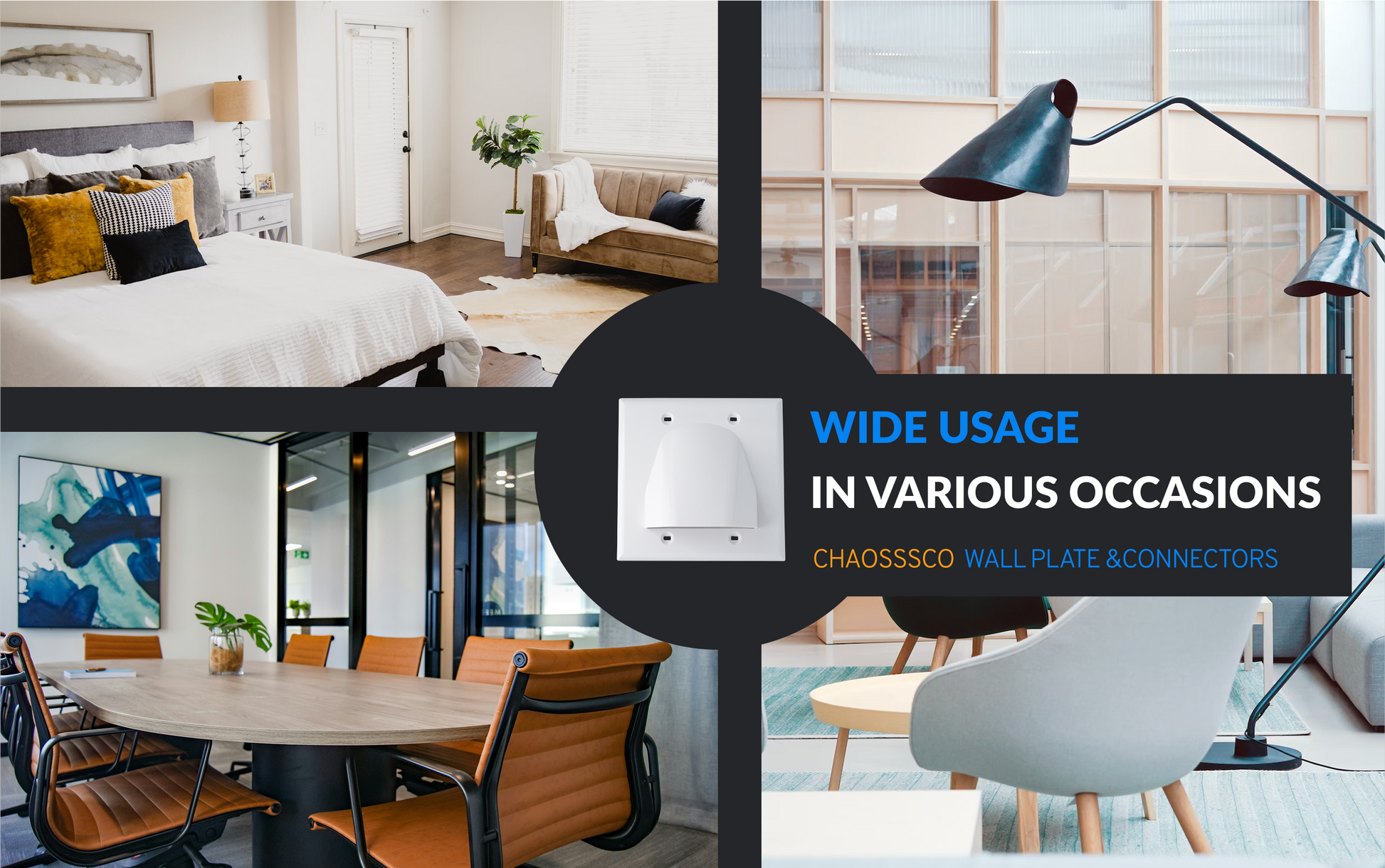 2-Gang Hooded Cable Entry/Exit Wall Plate for Low Voltage AV Cables